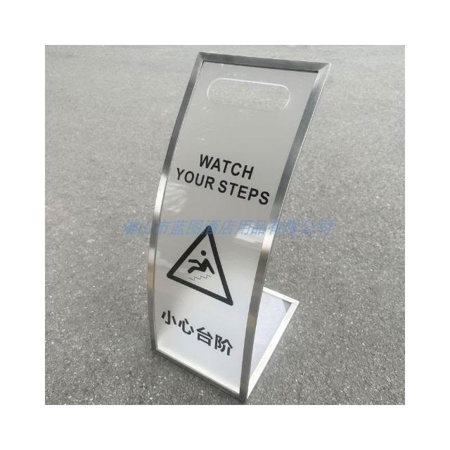 不銹鋼亞克力透明台階弧形提示牌小心地滑告示牌清潔指示警示牌客製尺寸標示牌路牌不銹鋼警告立牌