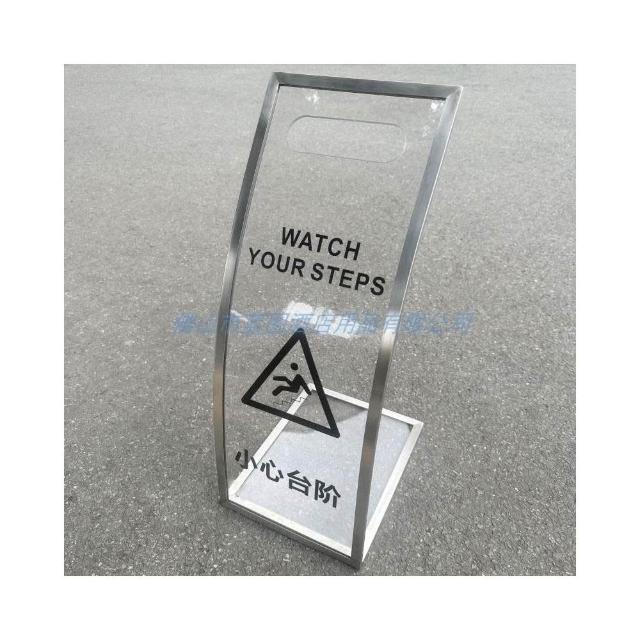 不銹鋼亞克力透明台階弧形提示牌小心地滑告示牌清潔指示警示牌客製尺寸標示牌路牌不銹鋼警告立牌