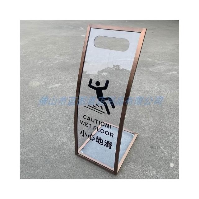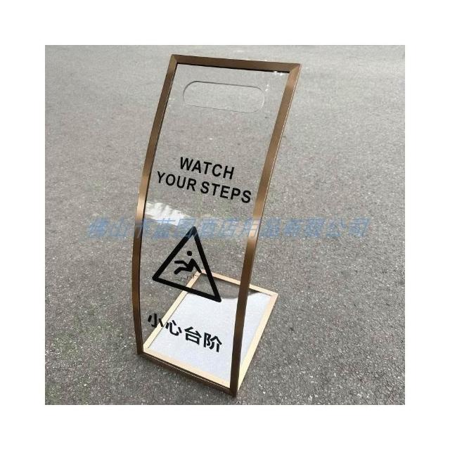 不銹鋼亞克力透明台階弧形提示牌小心地滑告示牌清潔指示警示牌客製尺寸標示牌路牌不銹鋼警告立牌