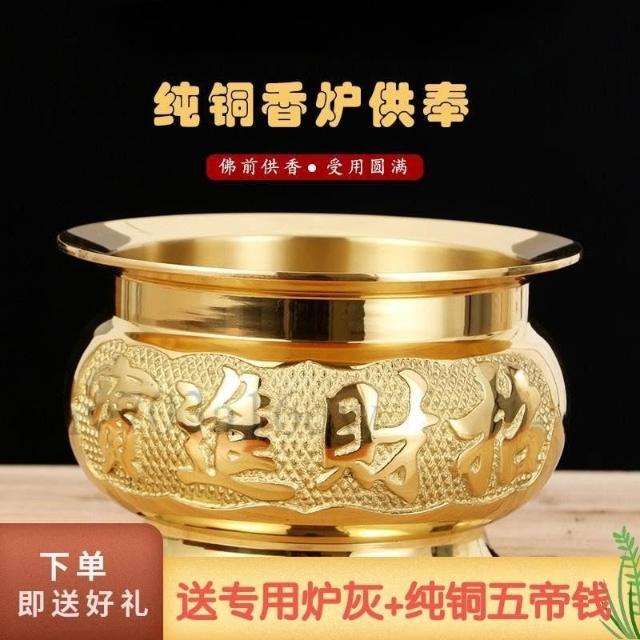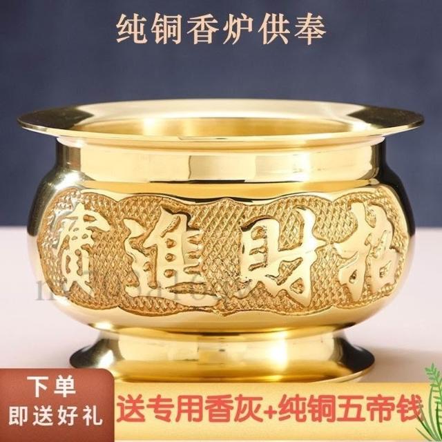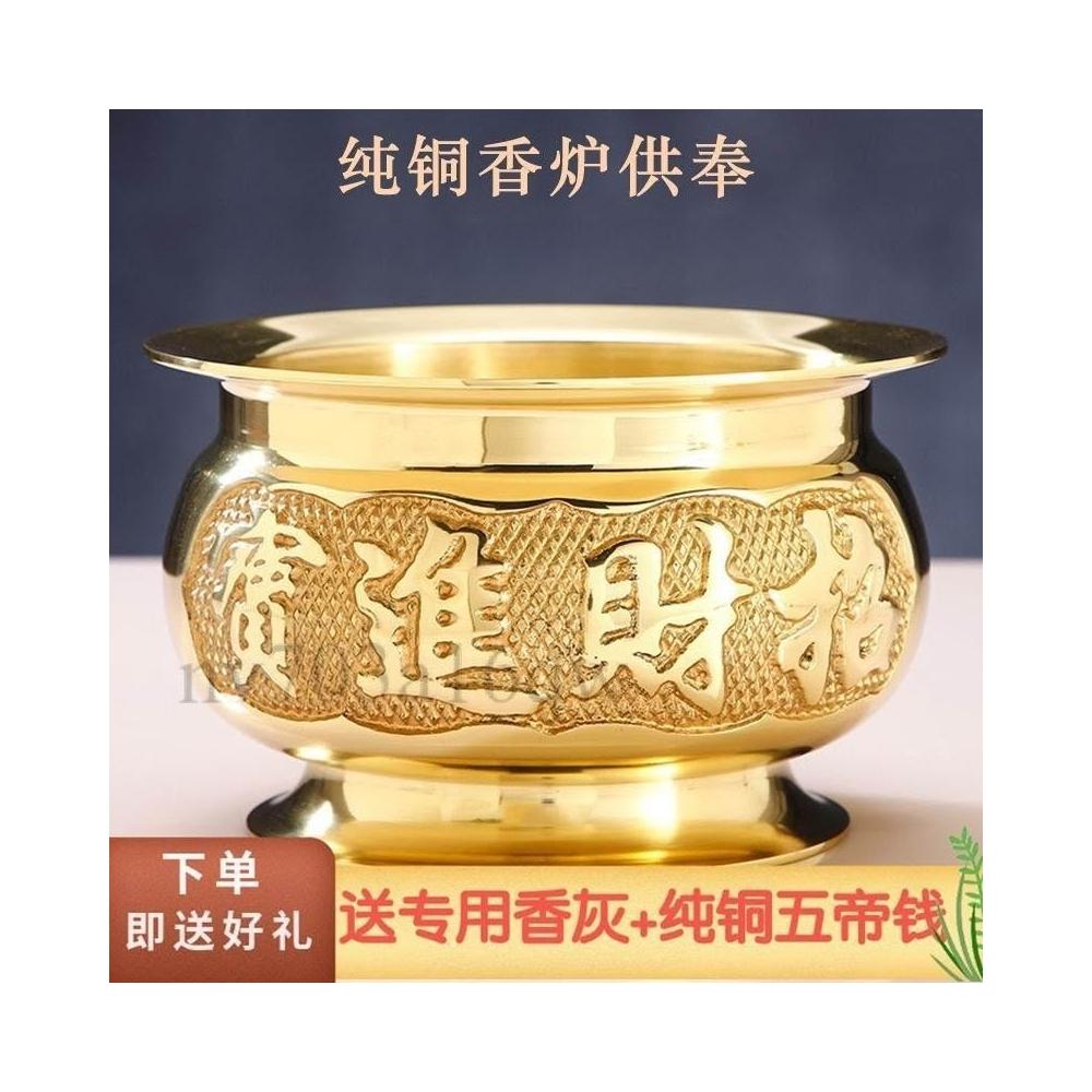 圆通佛具纯铜香炉家用供奉烧香的香炉财神爷香炉碗室内插香炉上香 香爐 淨香爐 壇香爐 小香爐 檀香爐