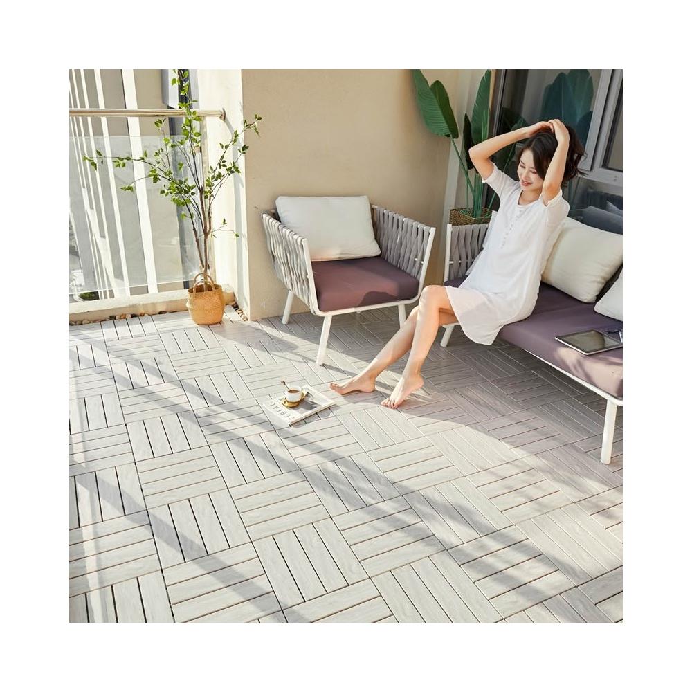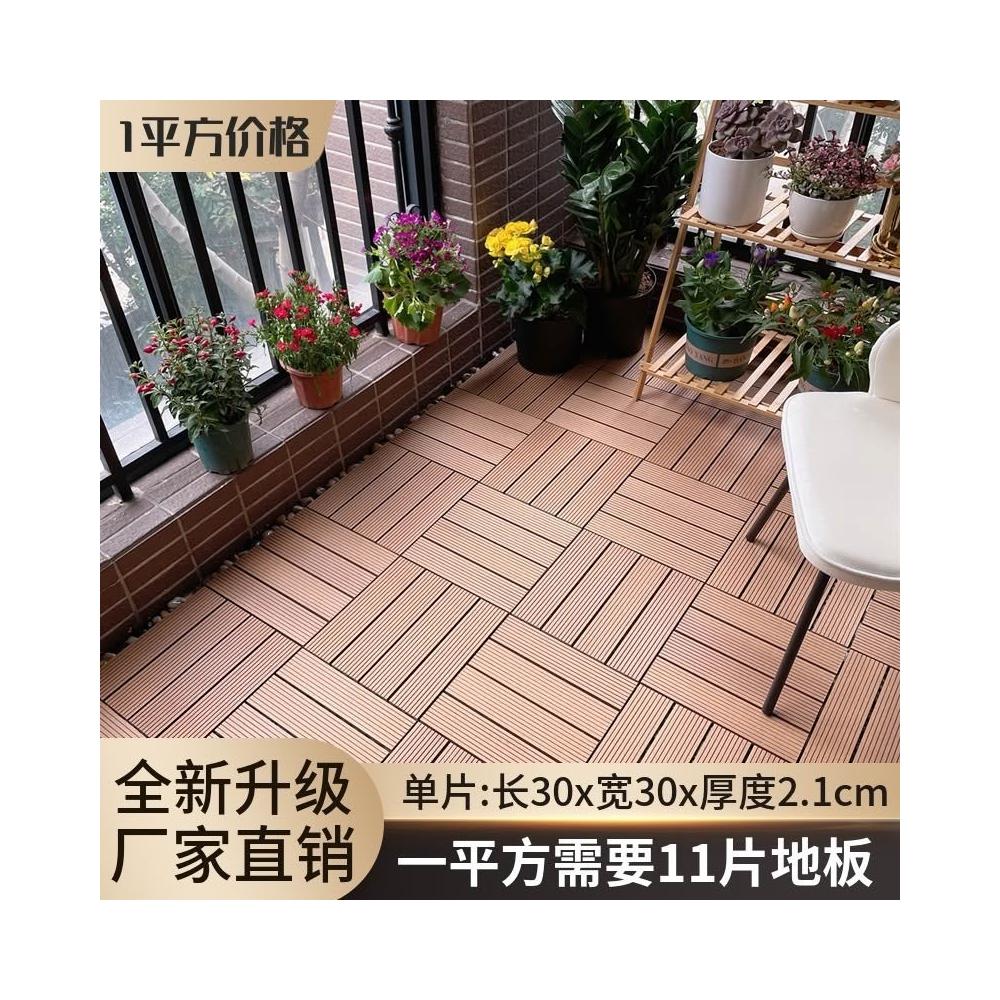 塑木拼接 户外露台庭院室外地面 铺设阳台改造 防腐实木地板 塑木地板 卡扣式地板 陽臺地板 戶外地板