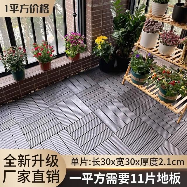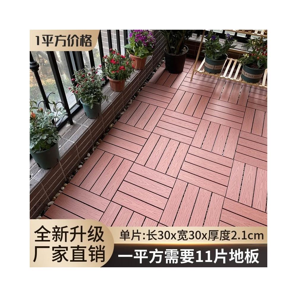 塑木拼接 户外露台庭院室外地面 铺设阳台改造 防腐实木地板 塑木地板 卡扣式地板 陽臺地板 戶外地板