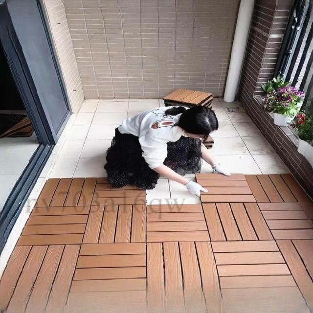 塑木拼接 户外露台庭院室外地面 铺设阳台改造 防腐实木地板 塑木地板 卡扣式地板 陽臺地板 戶外地板