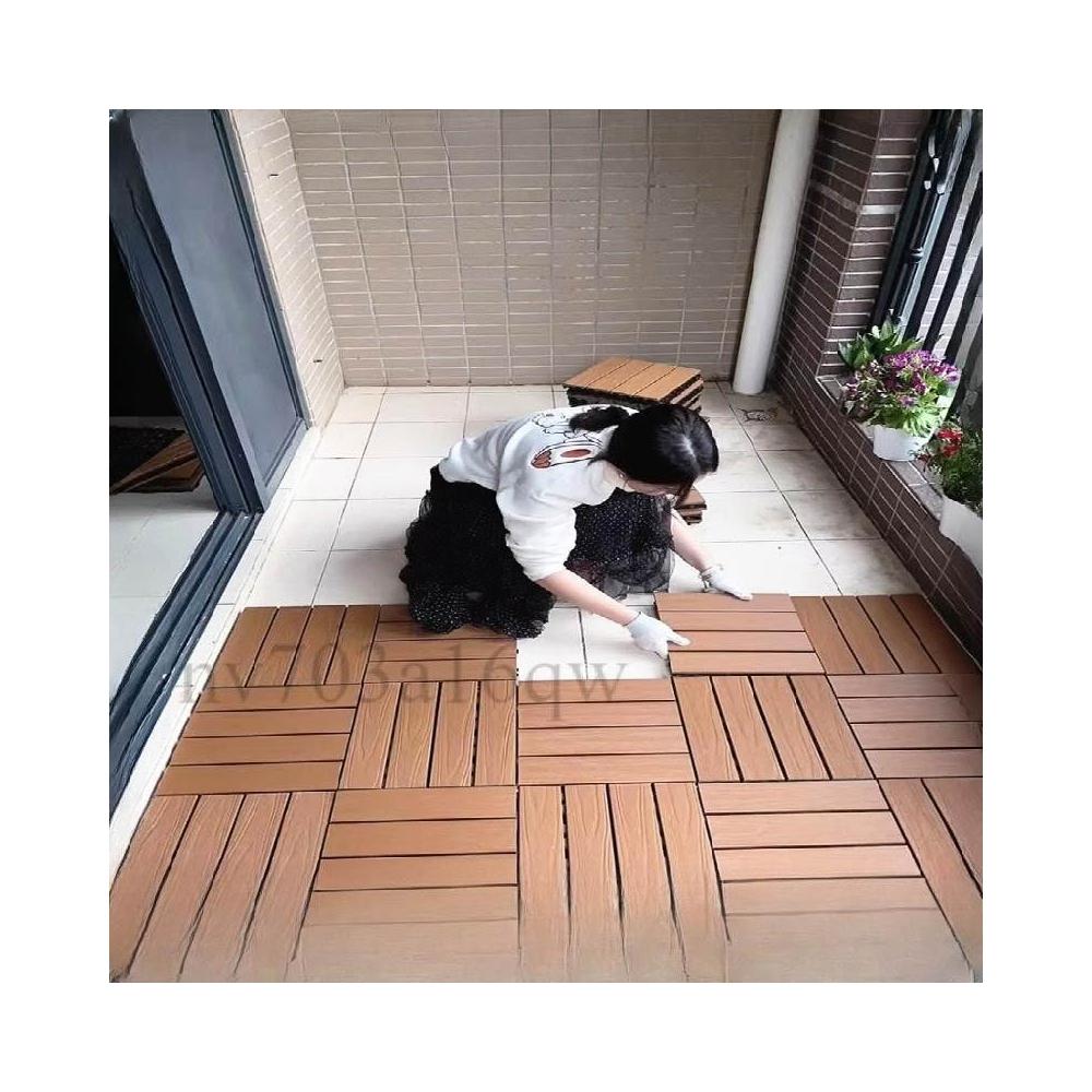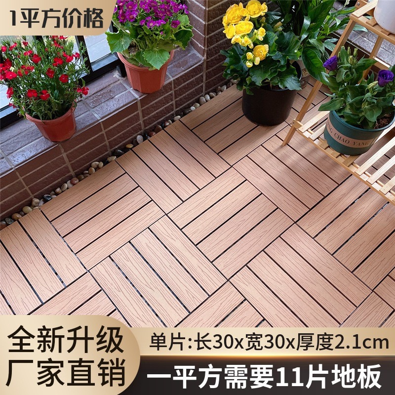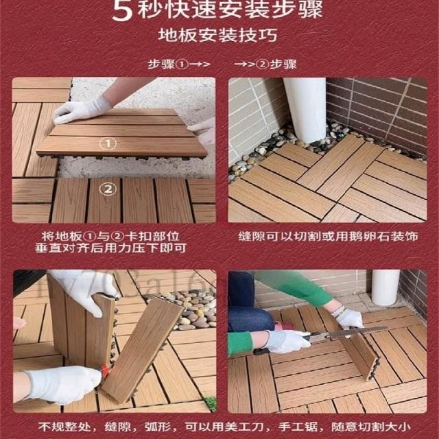 塑木拼接 户外露台庭院室外地面 铺设阳台改造 防腐实木地板 塑木地板 卡扣式地板 陽臺地板 戶外地板