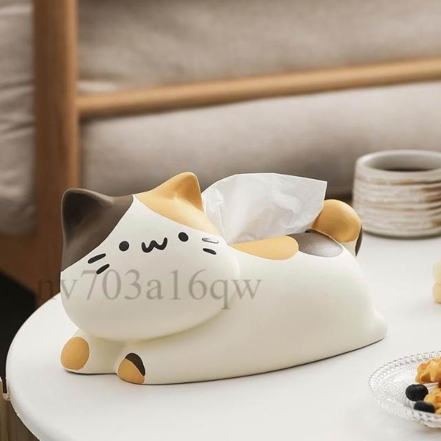 翹尾貓風陶瓷抽紙紙巾盒 可愛裝飾 家用客廳網紅餐巾紙抽盒創意 創意面紙盒 可愛面紙盒 小抽面紙盒