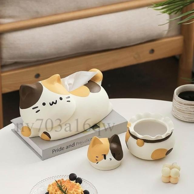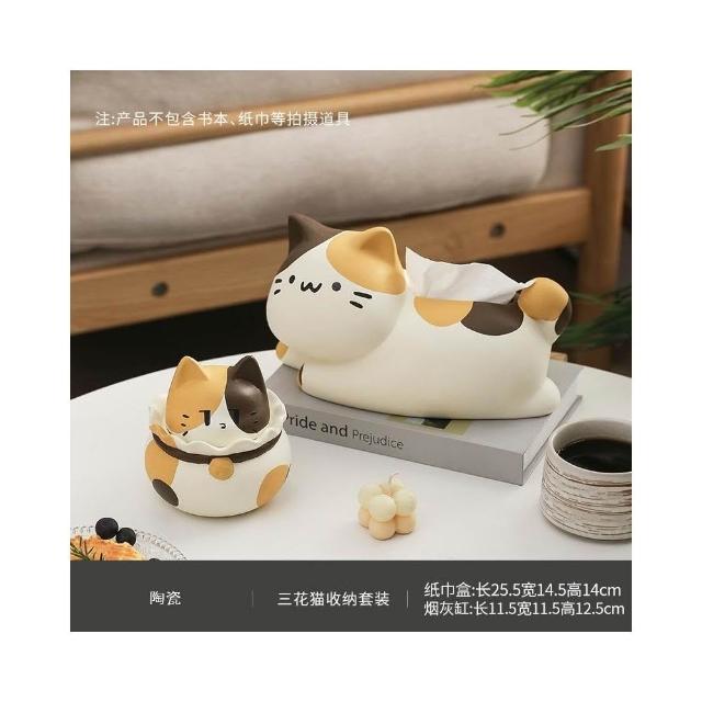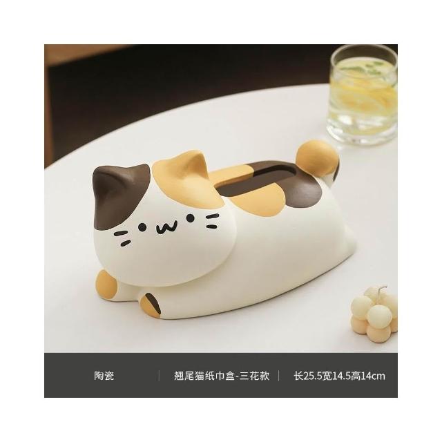 翹尾貓風陶瓷抽紙紙巾盒 可愛裝飾 家用客廳網紅餐巾紙抽盒創意 創意面紙盒 可愛面紙盒 小抽面紙盒