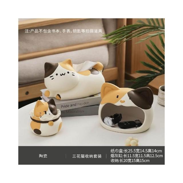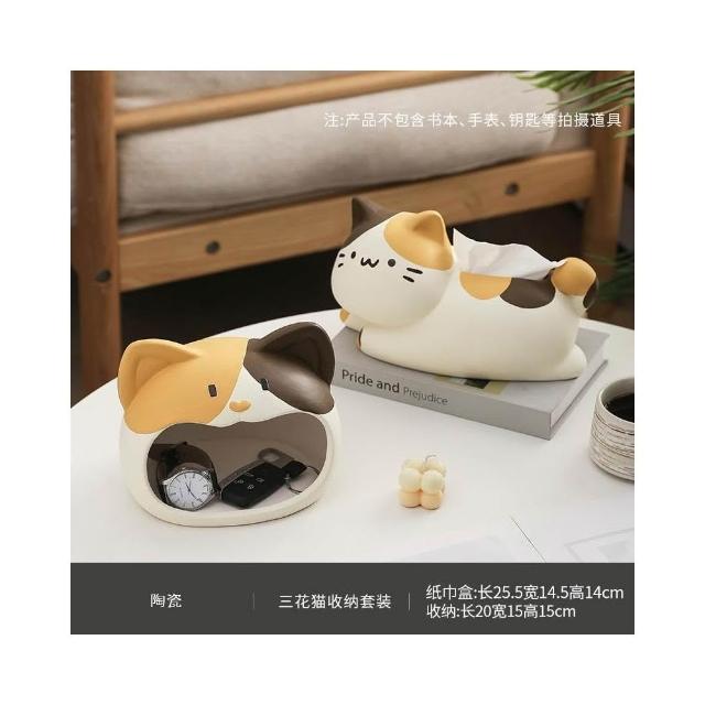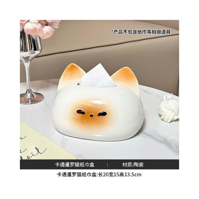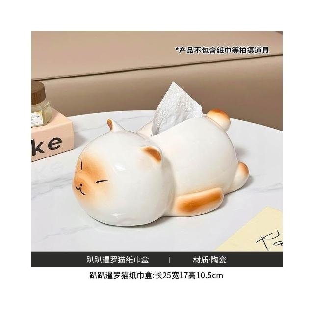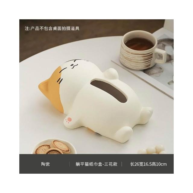 翹尾貓風陶瓷抽紙紙巾盒 可愛裝飾 家用客廳網紅餐巾紙抽盒創意 創意面紙盒 可愛面紙盒 小抽面紙盒