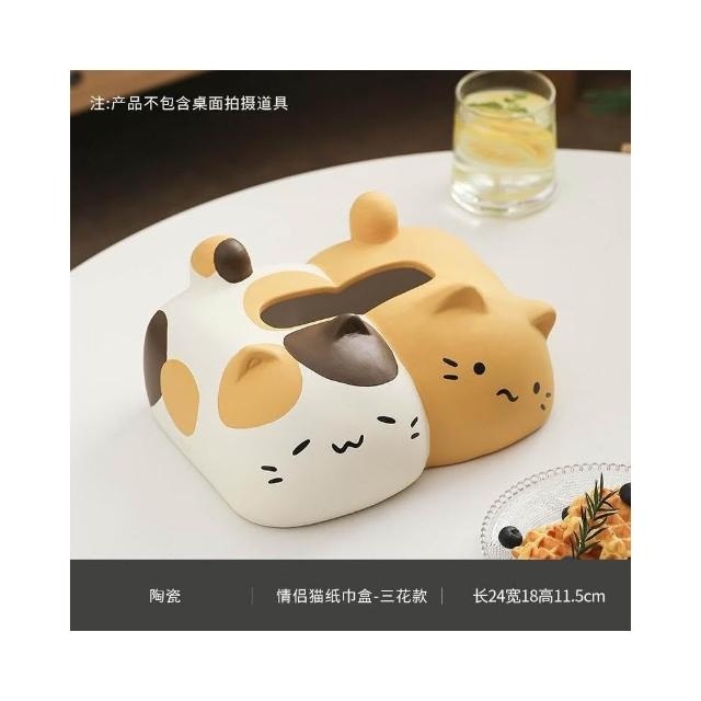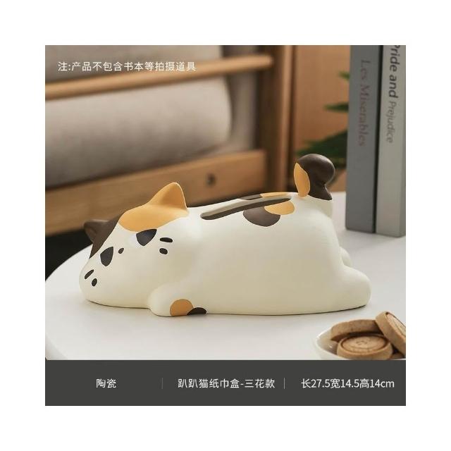 翹尾貓風陶瓷抽紙紙巾盒 可愛裝飾 家用客廳網紅餐巾紙抽盒創意 創意面紙盒 可愛面紙盒 小抽面紙盒