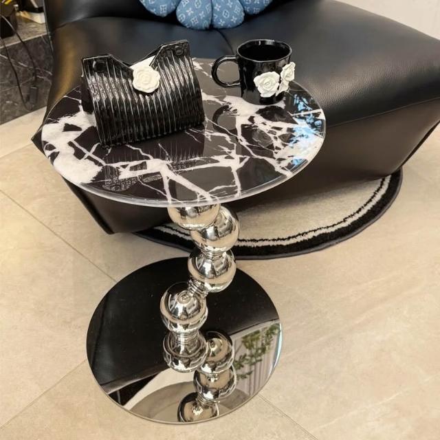 意式簡約岩板小茶几 迷你大理石小邊幾 陽台桌子 輕奢沙發客廳擺件桌 沙發邊桌 客廳桌 小邊桌 小圓桌