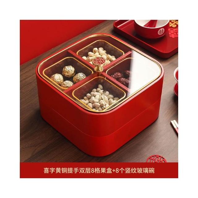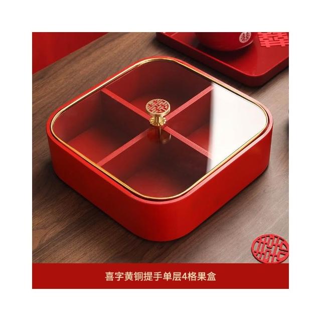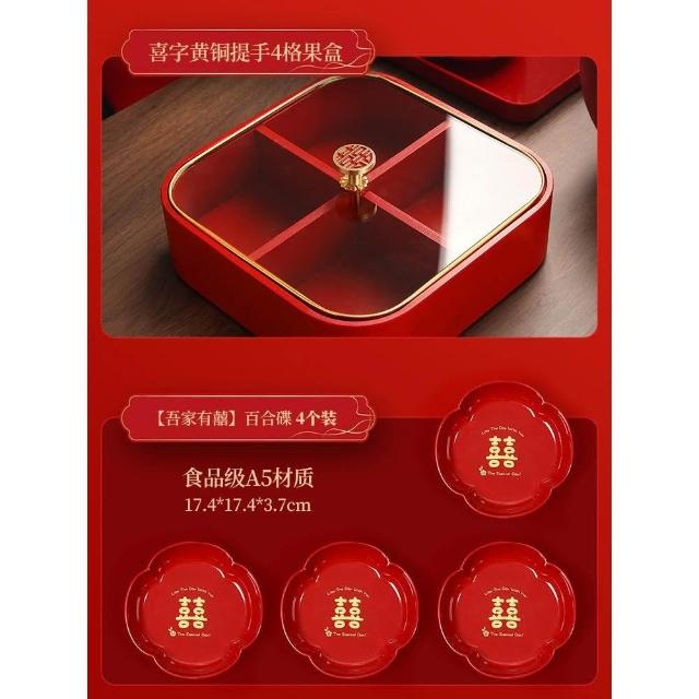 新中式实木红色喜庆糖果盒家用客厅干果盘新年结婚乔迁零食收纳盒點心盤零食乾果盤客廳幹果盒零食盤