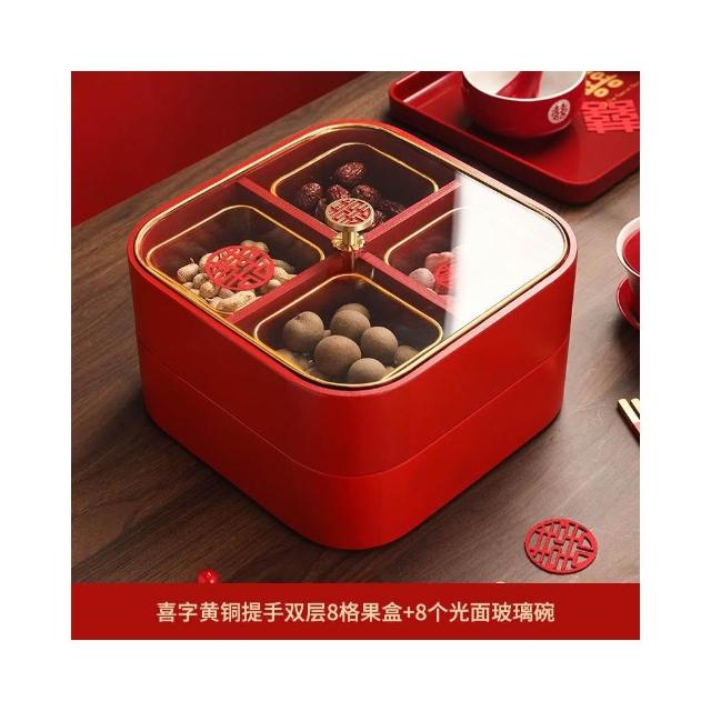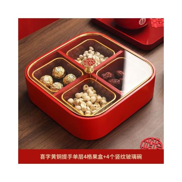 新中式实木红色喜庆糖果盒家用客厅干果盘新年结婚乔迁零食收纳盒點心盤零食乾果盤客廳幹果盒零食盤