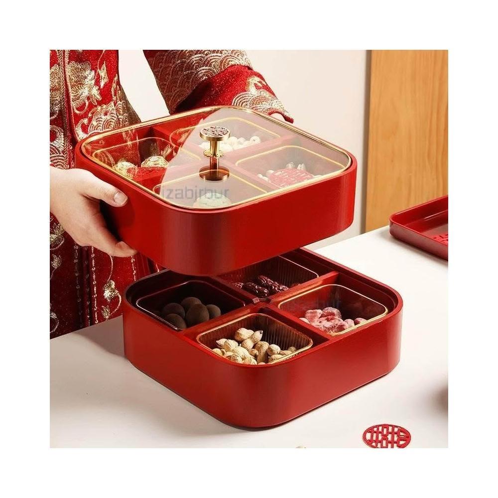 新中式实木红色喜庆糖果盒家用客厅干果盘新年结婚乔迁零食收纳盒點心盤零食乾果盤客廳幹果盒零食盤