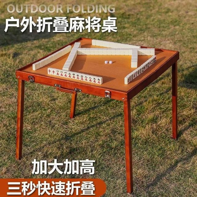戶外麻將桌 休閒娛樂桌 聚會轟趴桌 多人遊戲桌 户外便携式麻将露营折叠加高麻将桌套装手提胡桃木纹旅游