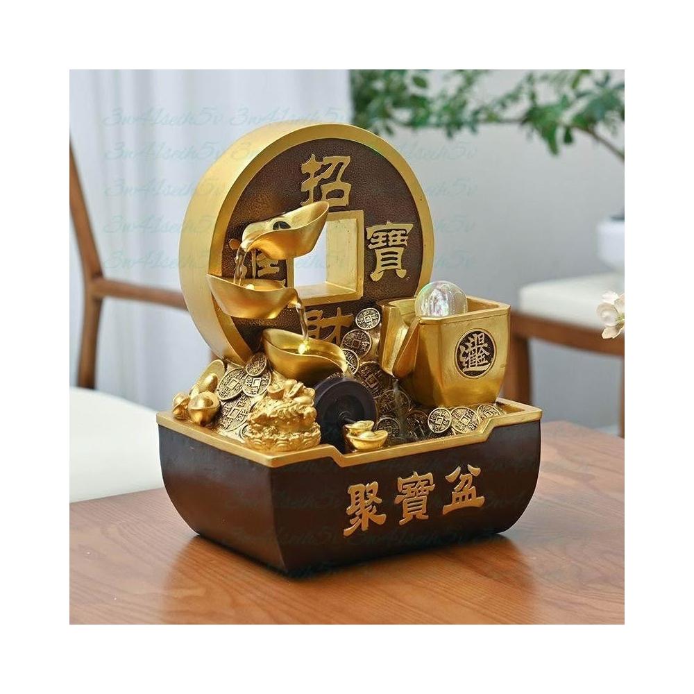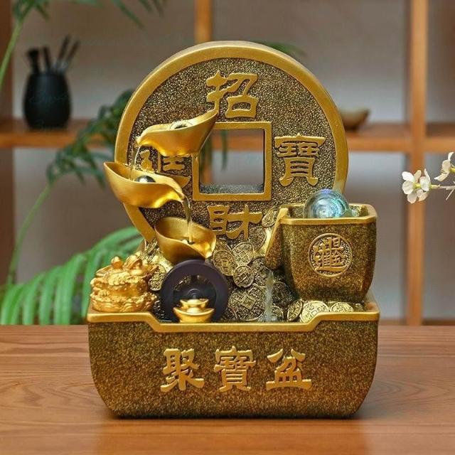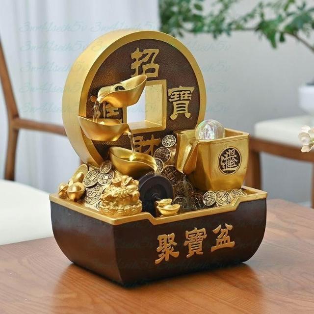 新中式聚宝盆 流水摆件 循环水流水盆 客厅玄关聚寶盆 办公室流水擺件 开业乔迁加湿桌面水景盆 招財擺