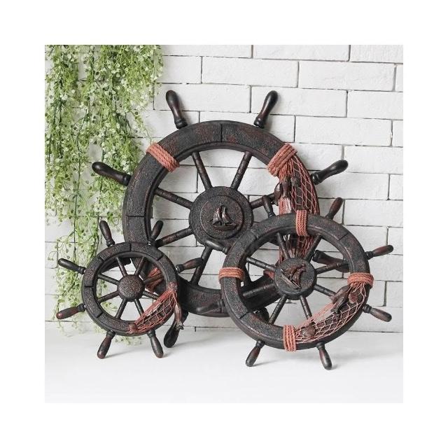 地中海船舵装饰木制复古做旧船锚壁挂仿旧裝飾舵手方向盘锚组酒吧装饰背景墻掛件船舵航海風收藏品
