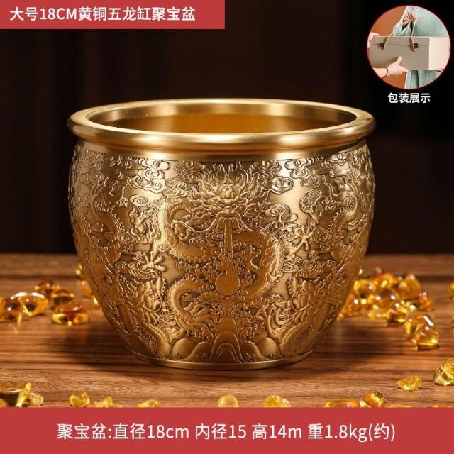 招财进宝聚宝盆 黄铜金蟾聚宝盆 客厅酒柜店铺装饰摆件 乔迁开业礼品 办公室招財擺飾 開幕送禮 入厝禮