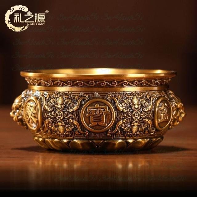 招财进宝聚宝盆 黄铜金蟾聚宝盆 客厅酒柜店铺装饰摆件 乔迁开业礼品 办公室招財擺飾 開幕送禮 入厝禮
