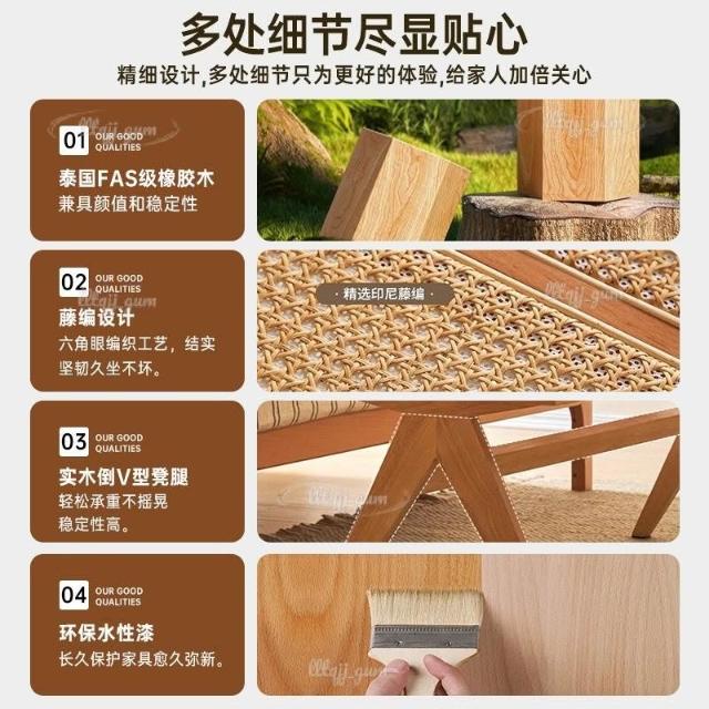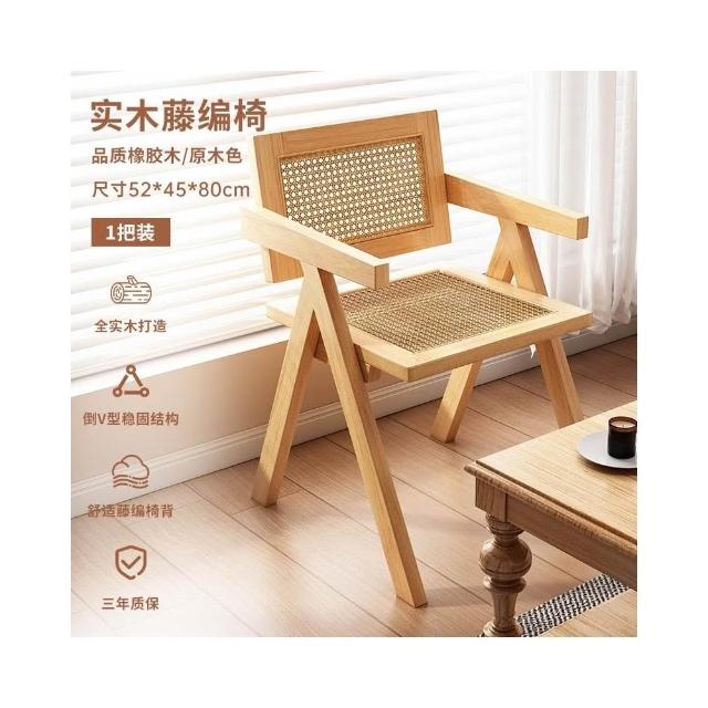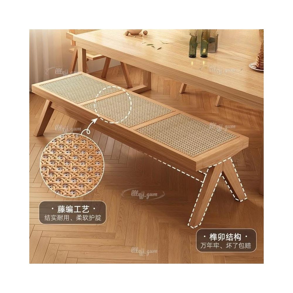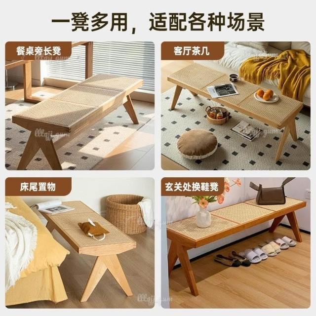 長條椅 實木餐椅 新款椅子 家用藤編長條凳 客廳吃飯椅子 餐桌椅 昌迪加爾凳子 藤編實木椅 橡膠木腿