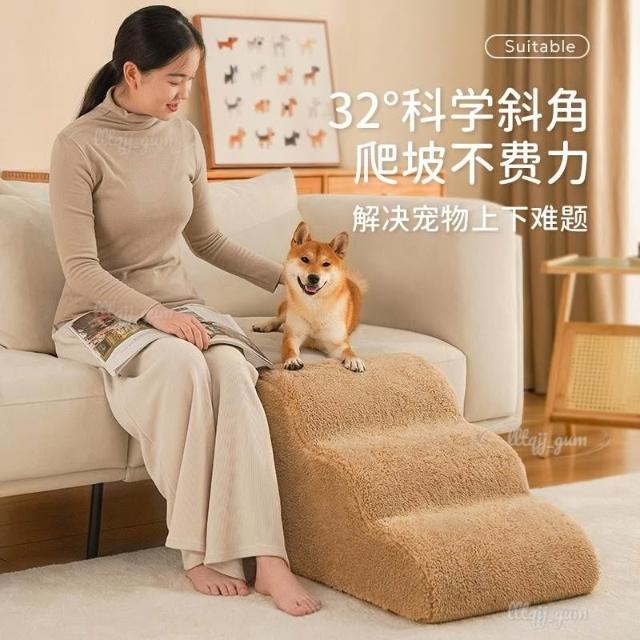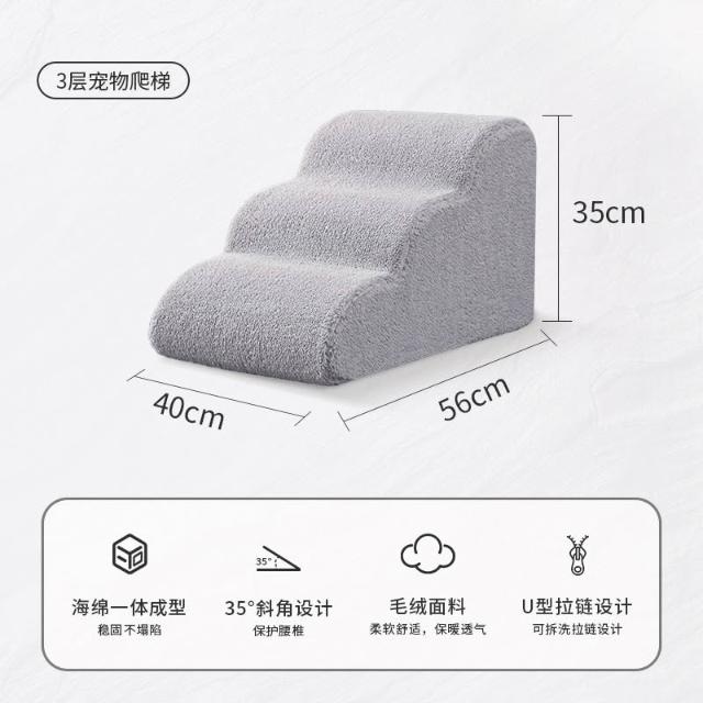 简约风舒适柔软宠物楼梯 防滑狗狗台阶 斜坡小型老年犬上床防滑爬梯床边沙发梯子 无异味 轻松好拆洗