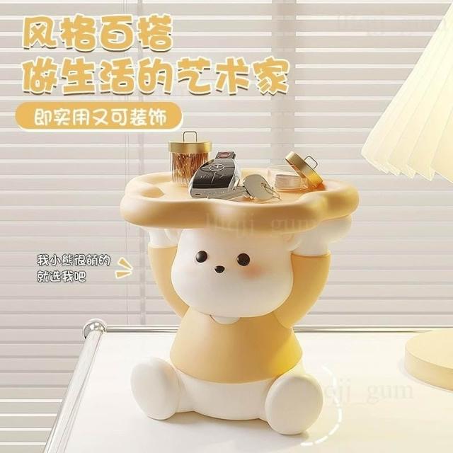 奶油風小熊托盤進門入戶玄關置物架鑰匙收納擺件客廳裝飾喬遷禮物 餐邊柜裝飾品 電視柜旁裝飾擺件 家居桌