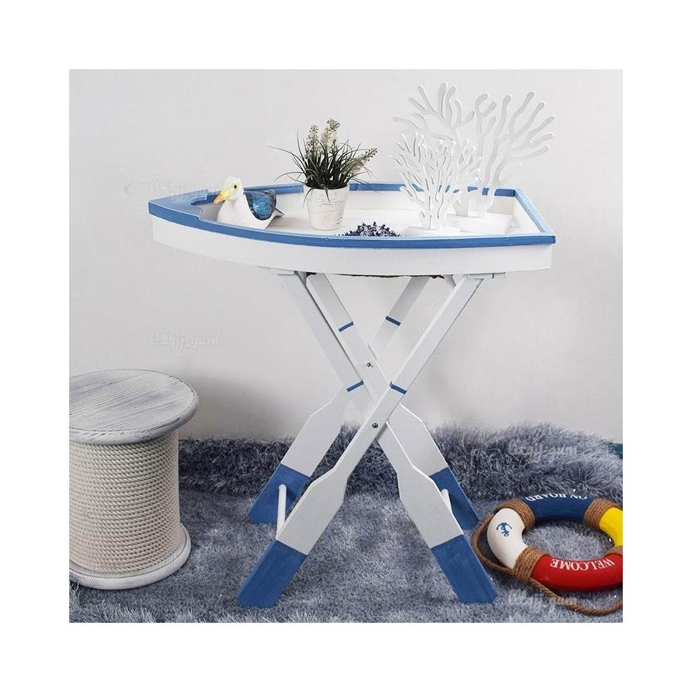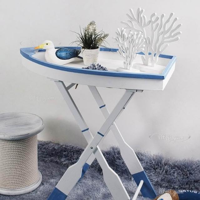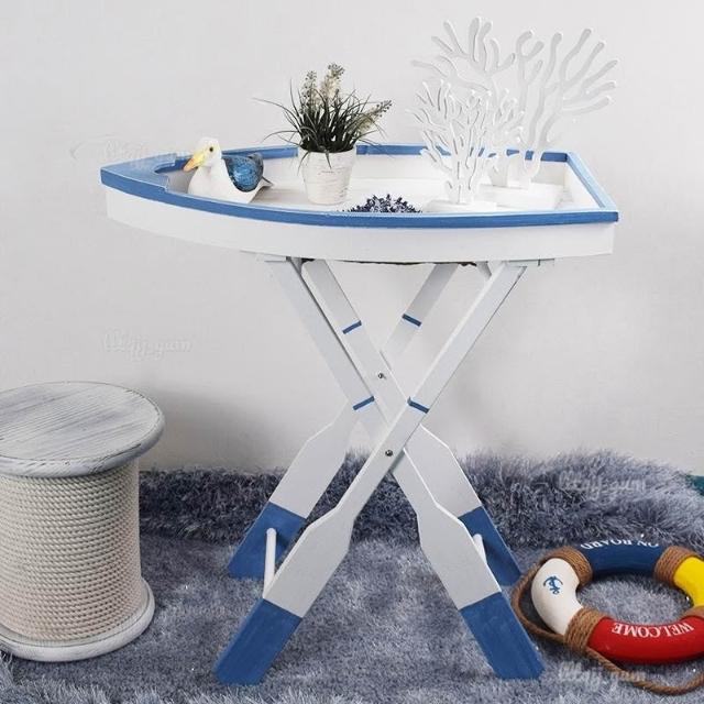海洋主題 家居裝飾 海洋擺件 創意木質桌 船型折疊桌 置物架 花架 庭院裝飾 花園茶幾 異形洽談桌