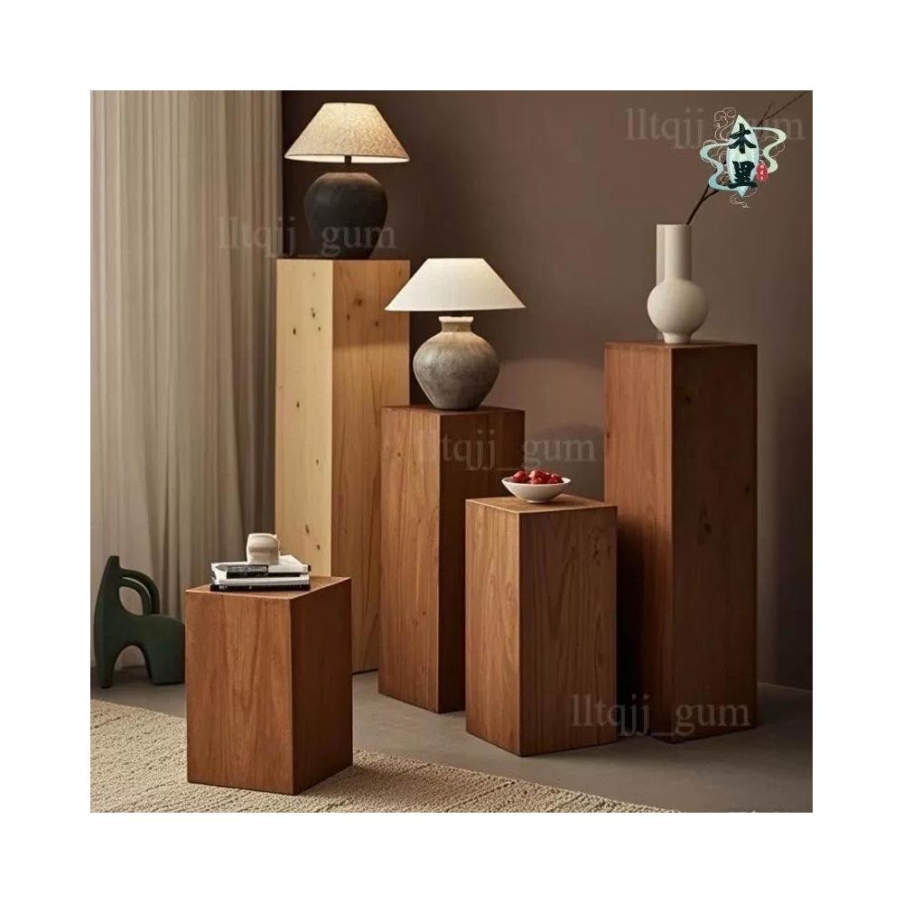 復古玄關原木木墩子 底座增高實木樹樁木墩 方形花架 圓墩形擺件椅 實木家用客廳木墩 底座增高實木墩