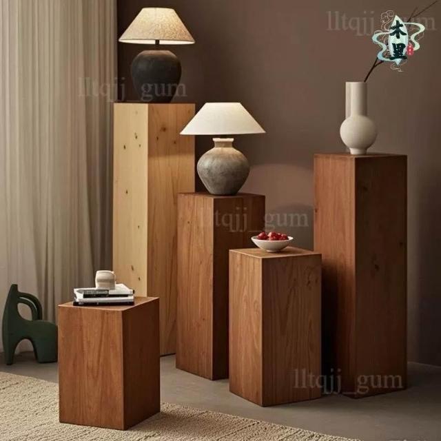 復古玄關原木木墩子 底座增高實木樹樁木墩 方形花架 圓墩形擺件椅 實木家用客廳木墩 底座增高實木墩