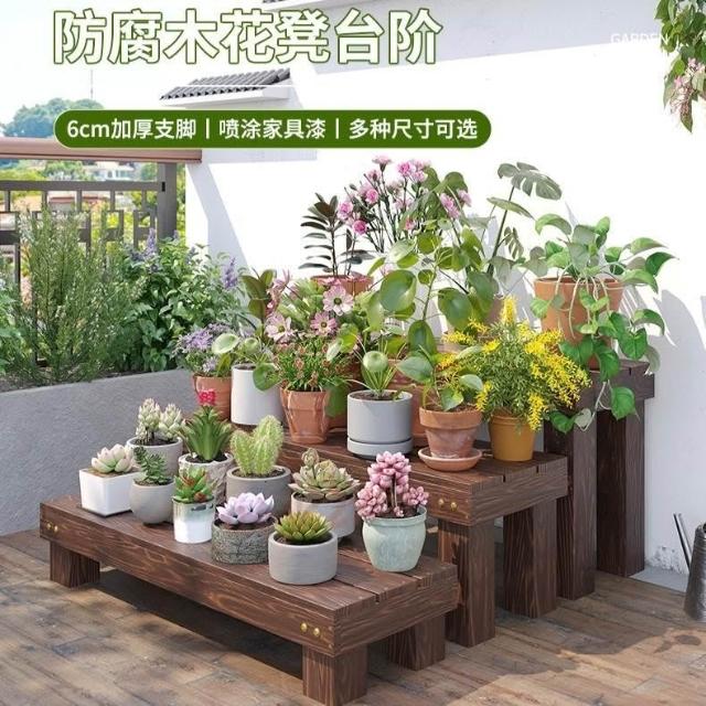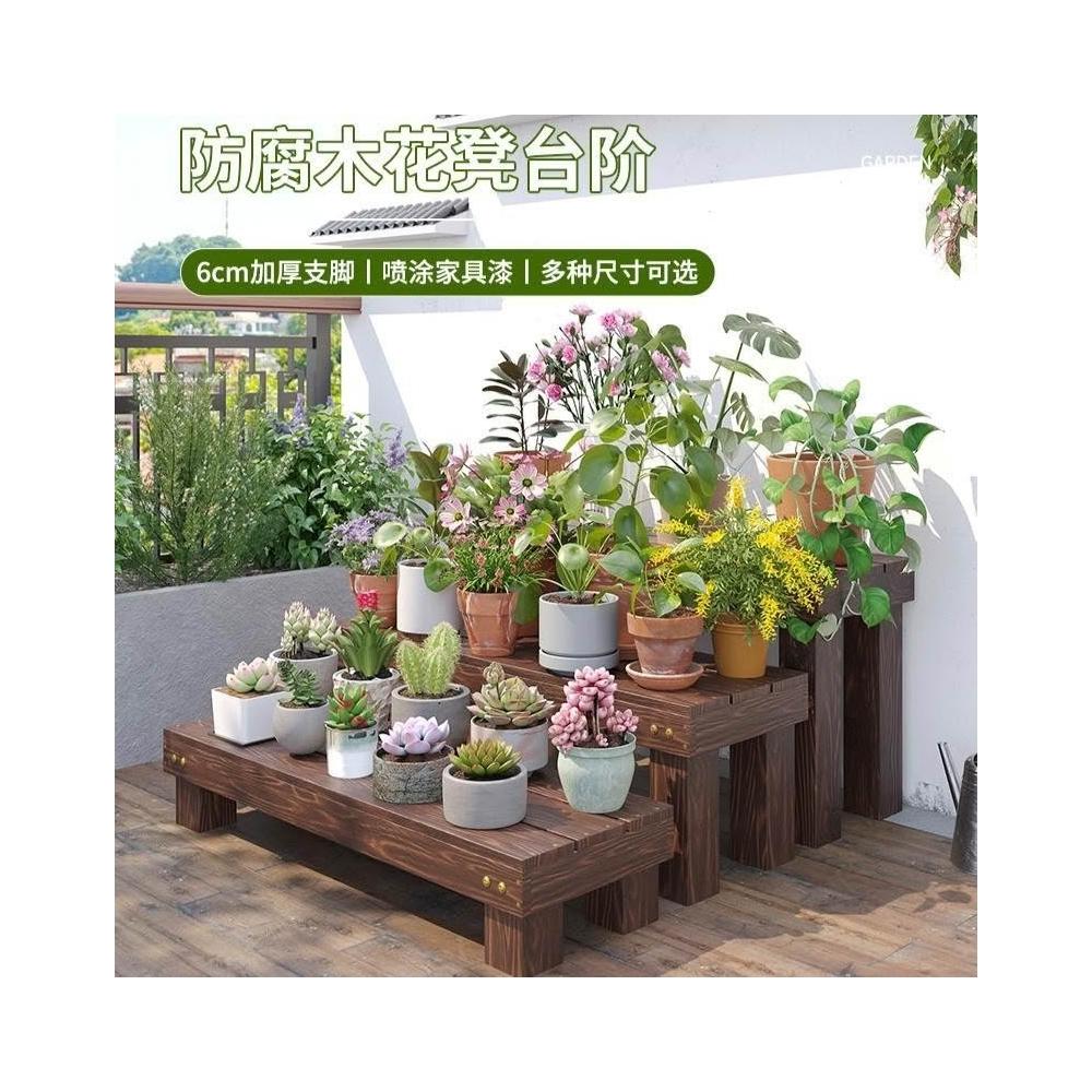 落地式魚缸架 碳化木花架 陽台置物架 多肉花架 防腐木花架 客廳收納架 室內花盆架 多功能植物架 盆