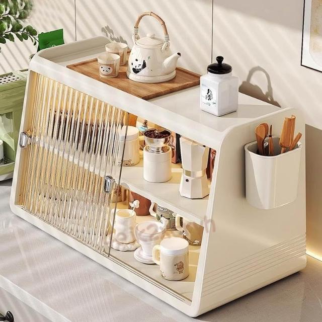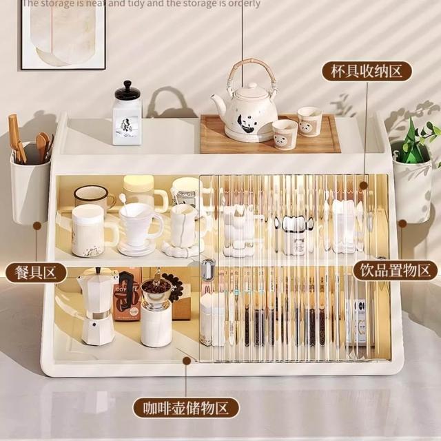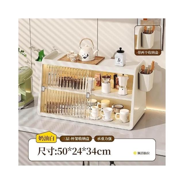 防塵置物架 茶水櫃 多功能收納置物架 奶瓶收納 咖啡杯放杯子 水杯收納盒置物櫃 桌面收納盒 廚房收