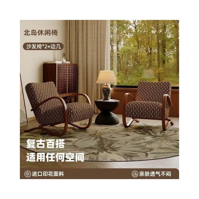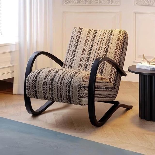 中古風單人沙發椅 客廳陽臺休閑椅 咖啡角休閒椅 中古風單人沙發椅輕奢高級陽台臥室客廳單人椅復古設計師