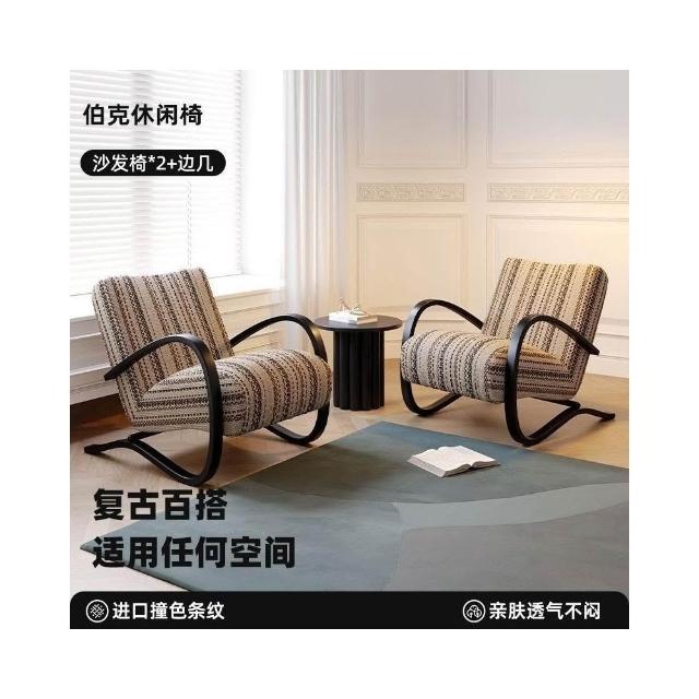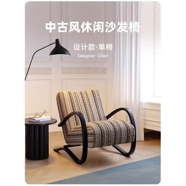 中古風單人沙發椅 客廳陽臺休閑椅 咖啡角休閒椅 中古風單人沙發椅輕奢高級陽台臥室客廳單人椅復古設計師