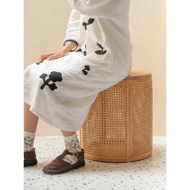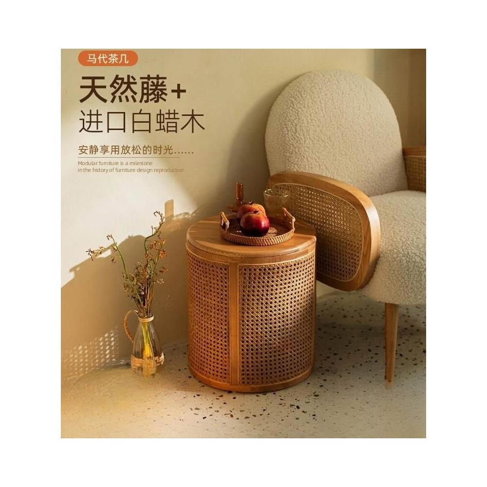 藤编边几北欧圆形实木侘寂客厅沙发小茶几阳台茶桌简约可收纳角几