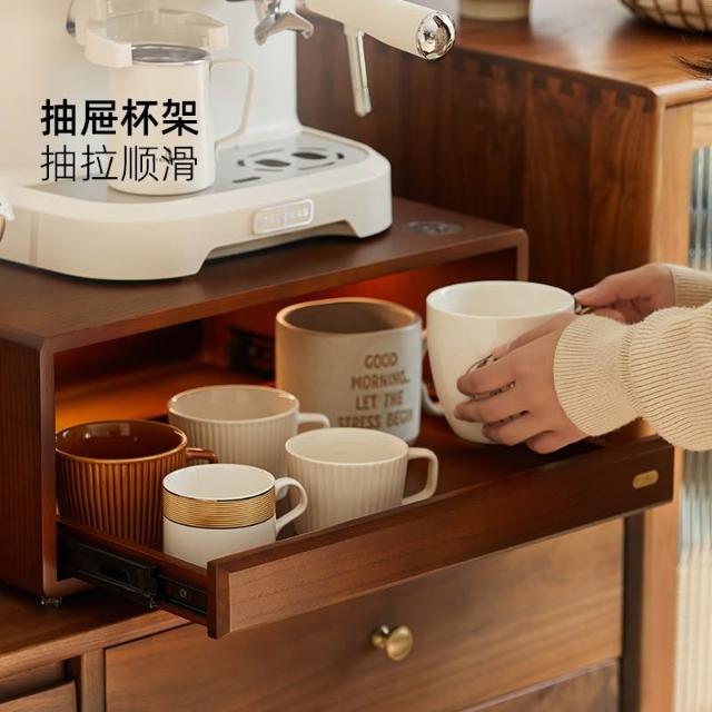 实木咖啡机抽屉置物架摆放台餐边柜杯子器具吧台咖啡杯防尘收纳架