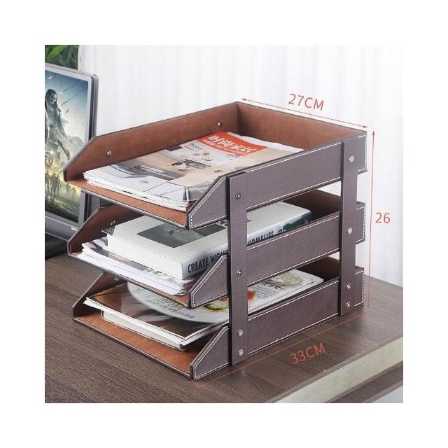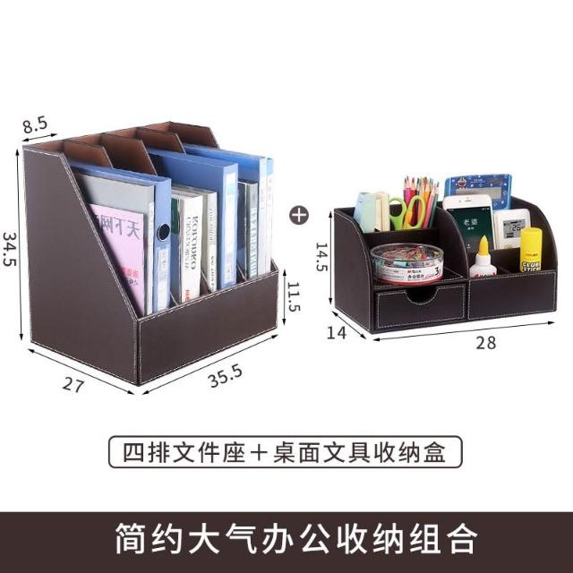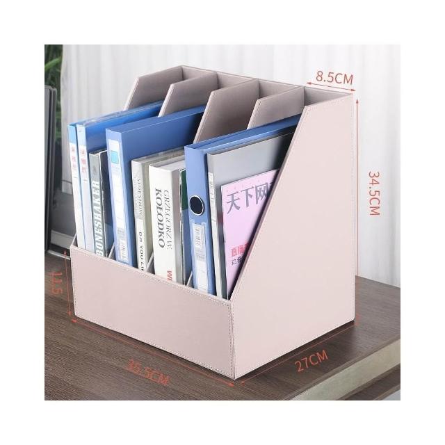 高檔桌面辦公用品文件框書立架子辦公室文件夾收納盒立式辦公桌皮革桌上資料置物架皮質文件格定製商務文件架