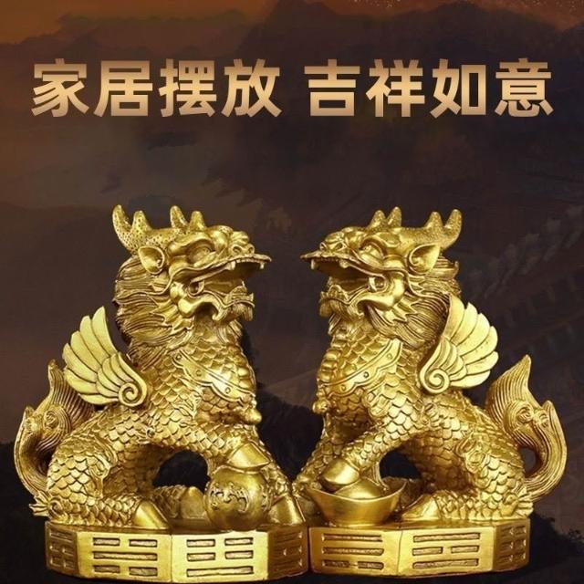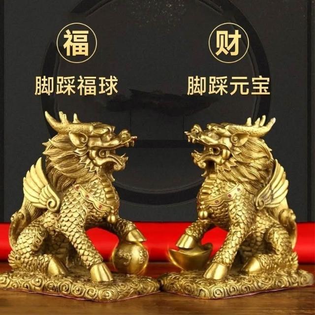 銅麒麟擺件一對純銅踩八卦臥室傢用辦公室玄關工藝品店鋪開業禮品 工藝品 風水擺飾 開業 鎮宅 招財