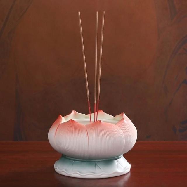 陶瓷青紅蓮花瓣香爐 供奉佛前擺件 觀音菩薩綫香爐插香 神房擺設 神明用品 佛具爐 龍香爐 陶瓷爐 香