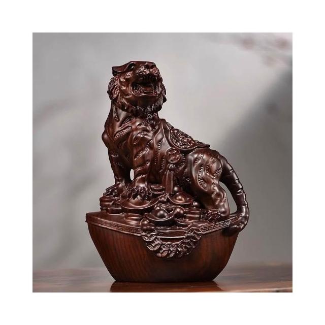 黑檀實木雕刻上山虎擺件生肖虎動物家居裝飾玄關辦公開業工藝禮品