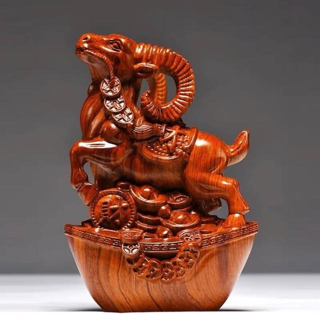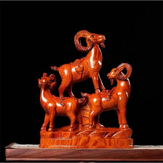 黑檀木雕三羊開泰擺件實木中式三陽開泰風水擺設客廳家居裝飾送禮