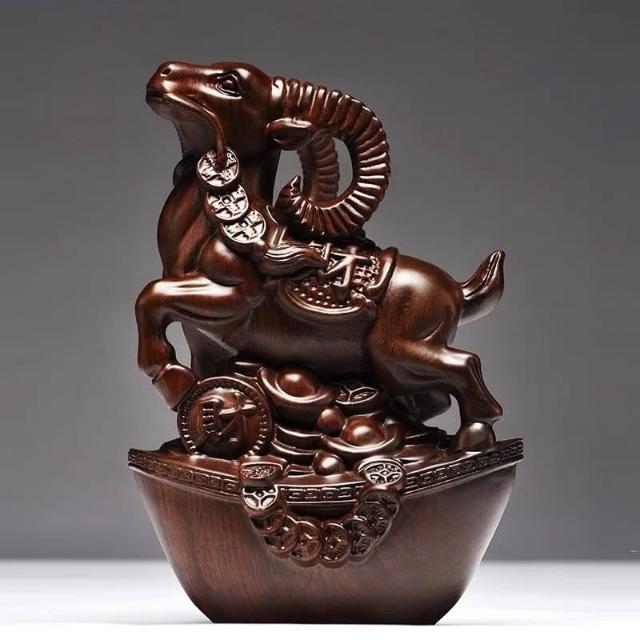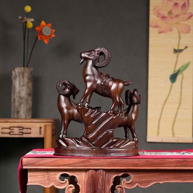 黑檀木雕三羊開泰擺件實木中式三陽開泰風水擺設客廳家居裝飾送禮