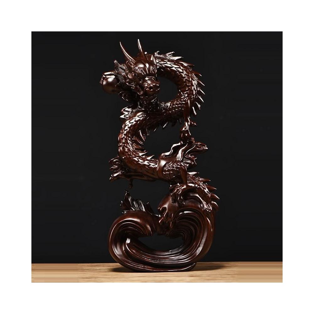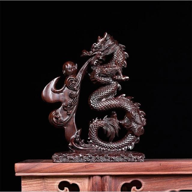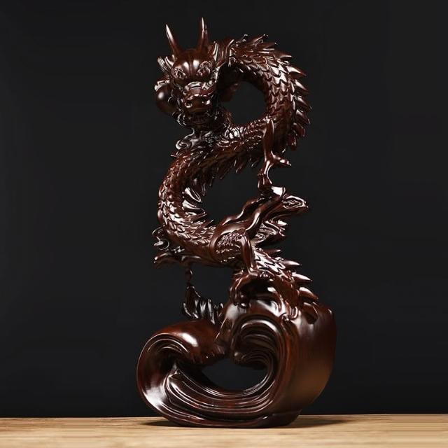 黑檀實木雕刻盤龍擺件生肖龍客廳裝飾龍年吉祥物工藝品新居送禮品