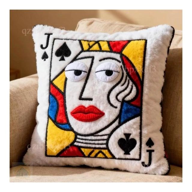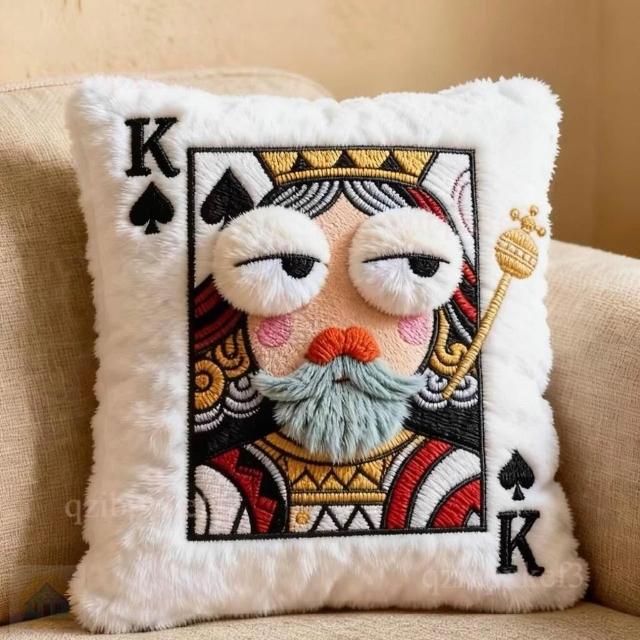 毛絨刺繡抱枕 撲克牌刺繡抱枕 娃娃玩偶抱枕 小禮物 趣味絨布靠墊 卡通創意玩偶 玩偶周邊 公仔抱枕