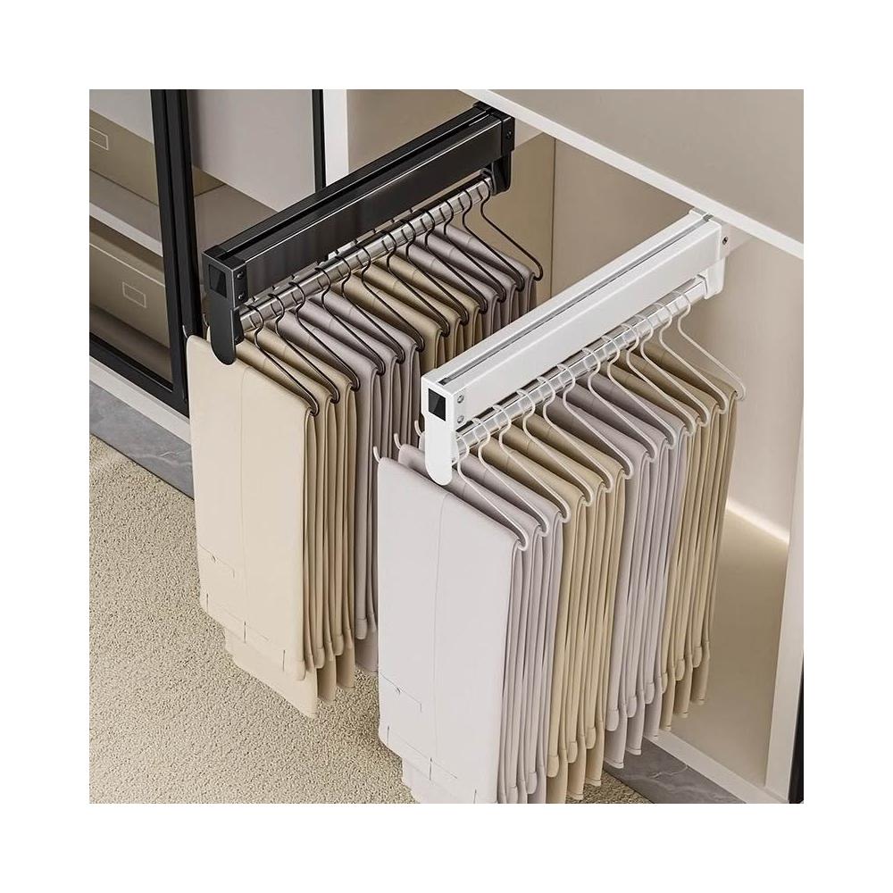 收納架 衣架 褲架伸縮滑軌頂裝褲抽拉式衣架掛衣杆衣櫃內置掛褲子褲掛軌道五金