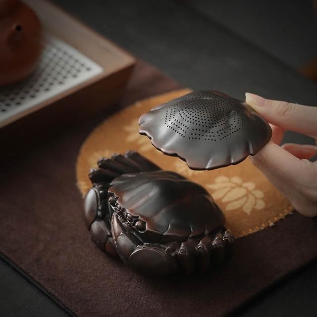 紫陶螃蟹茶漏全陶瓷一體過濾組可養茶寵擺件家用茶葉過濾網茶隔