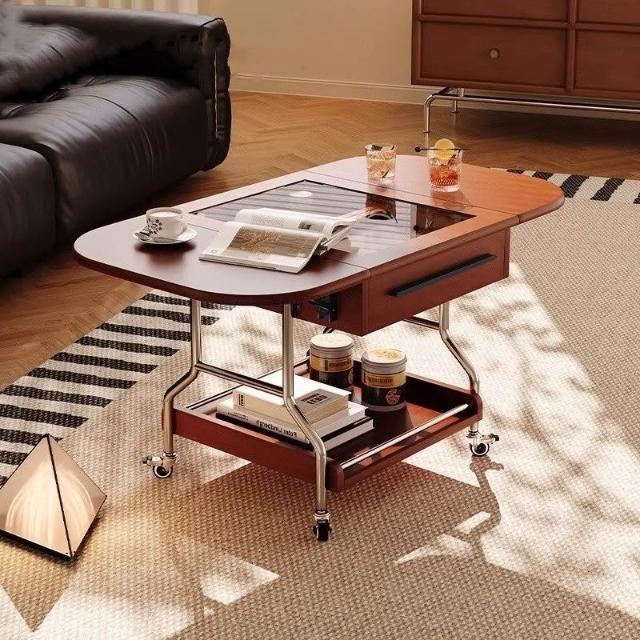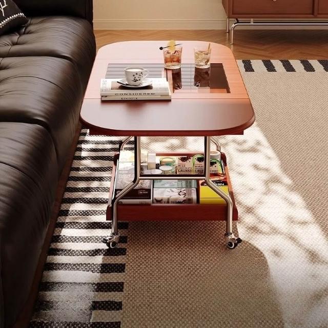 茶几 小戶型邊几 側邊桌可升降茶几 中古風客廳折疊茶幾 圓形桌子可移動網紅家用小戶型
