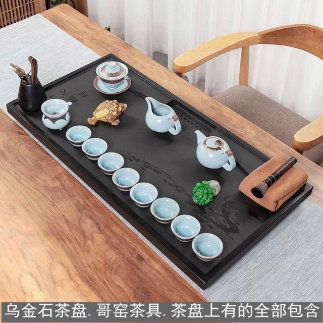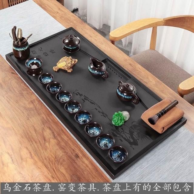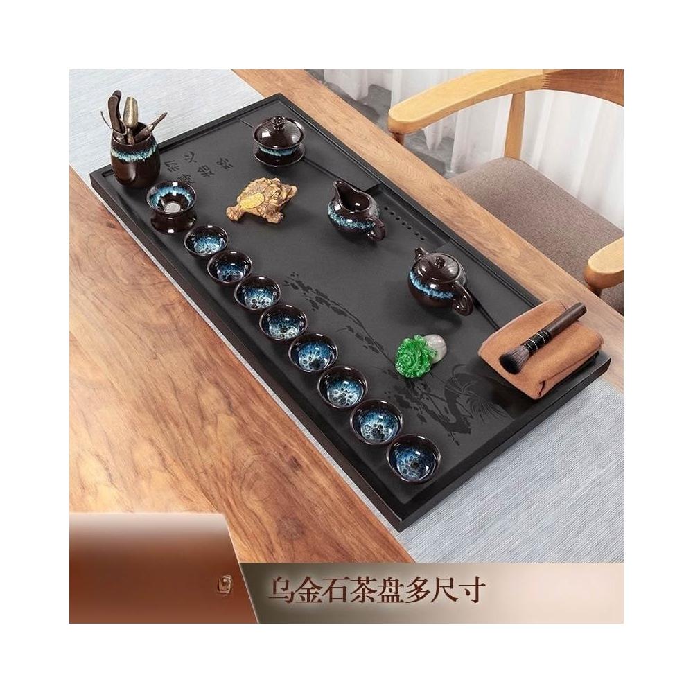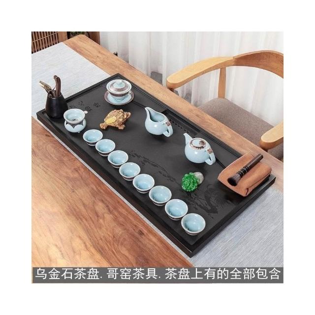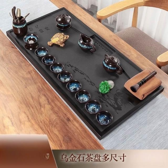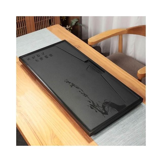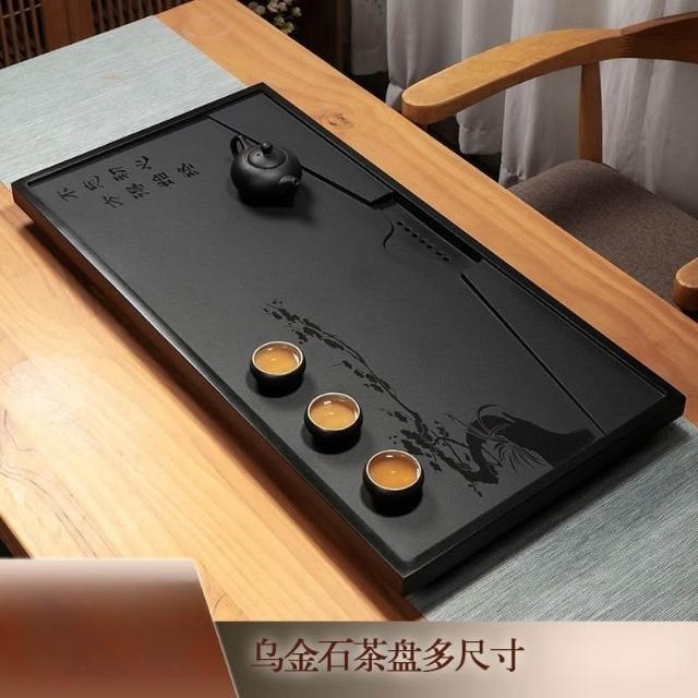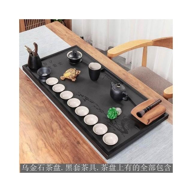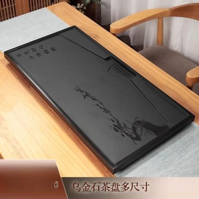 茶具盤 禪意茶盤烏金石茶盤石頭茶海家用簡約大小號天然石材茶臺茶具黑金石刻字 功夫茶臺 泡茶茶臺 排水