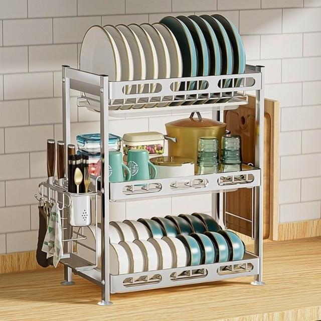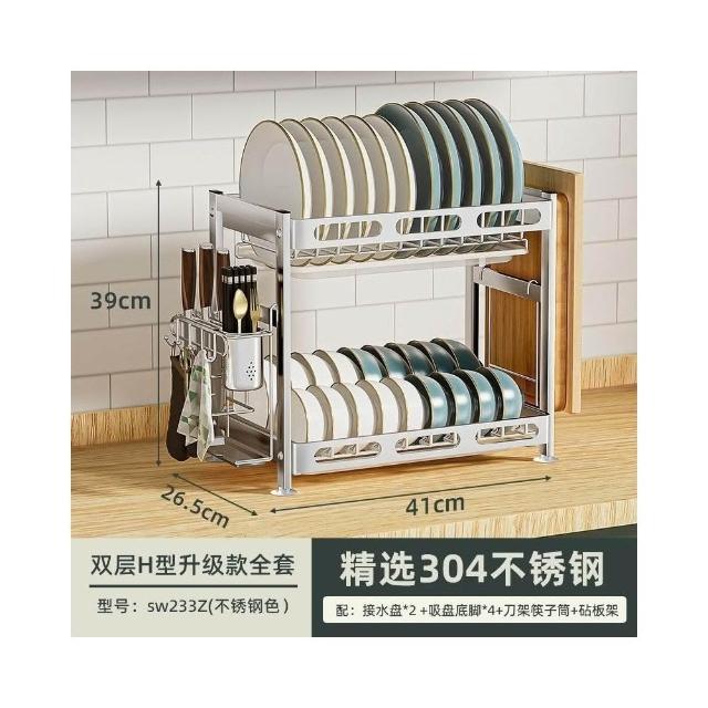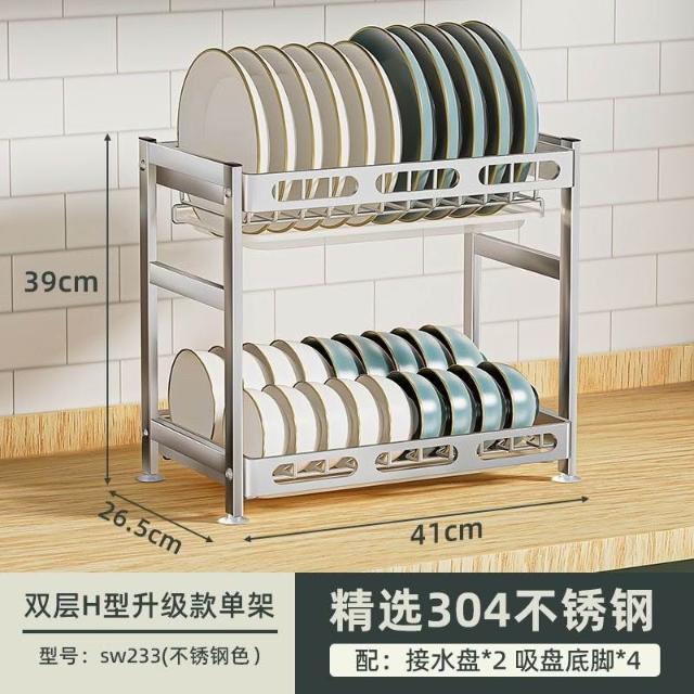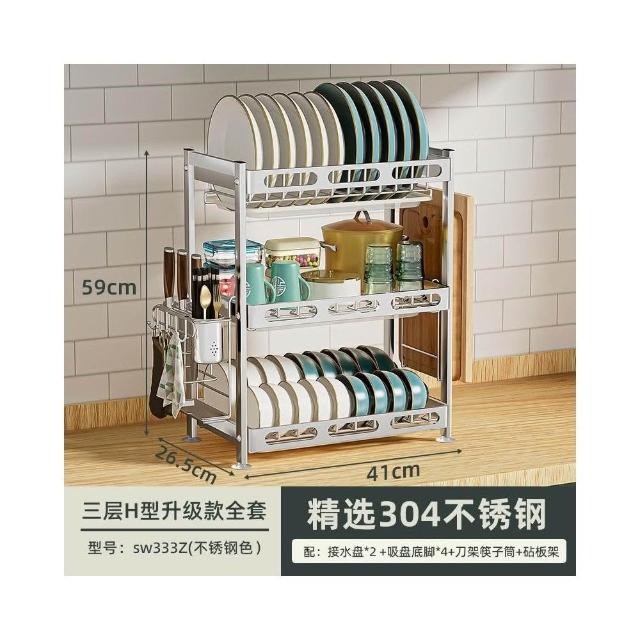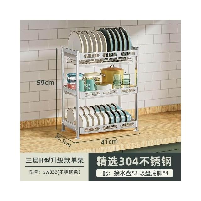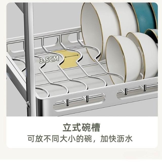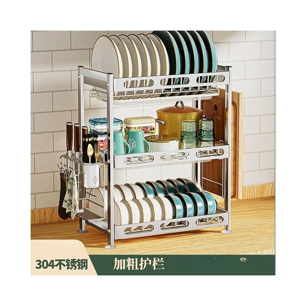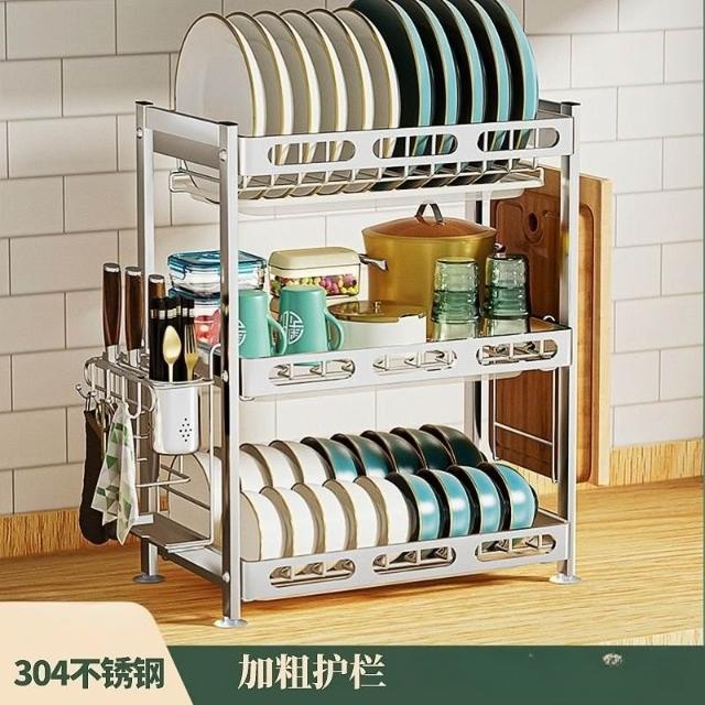 加粗304不銹鋼碗架 廚房架子置物架雙層放碗盤筷子瀝水架三層廚房置物架 碗碟瀝水架 碗盤置物架