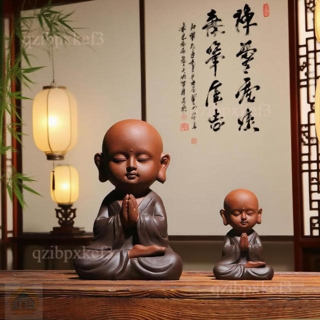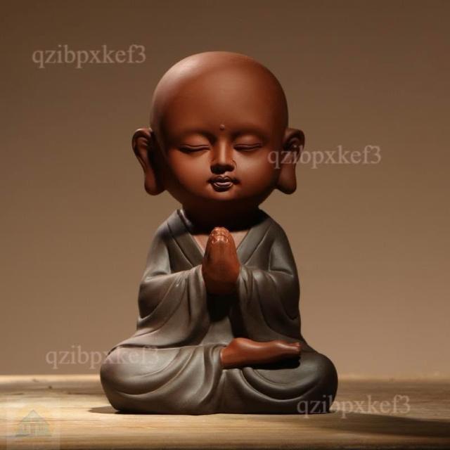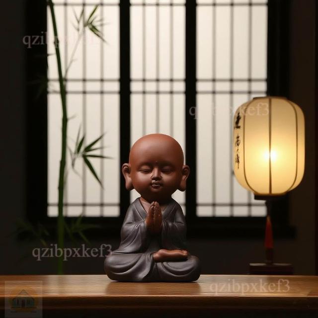 陶瓷可愛沙彌辦公室坐姿茶寵小和尚工藝品中式家居裝飾茶桌擺件