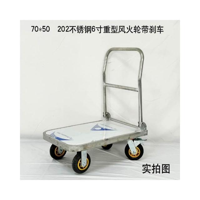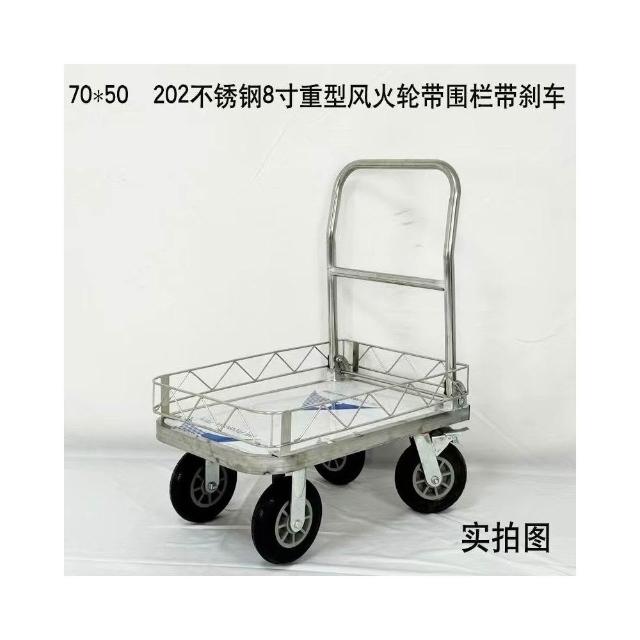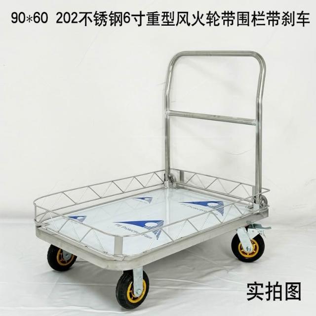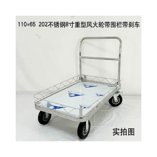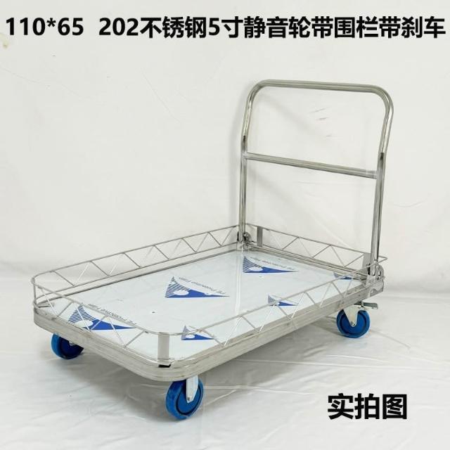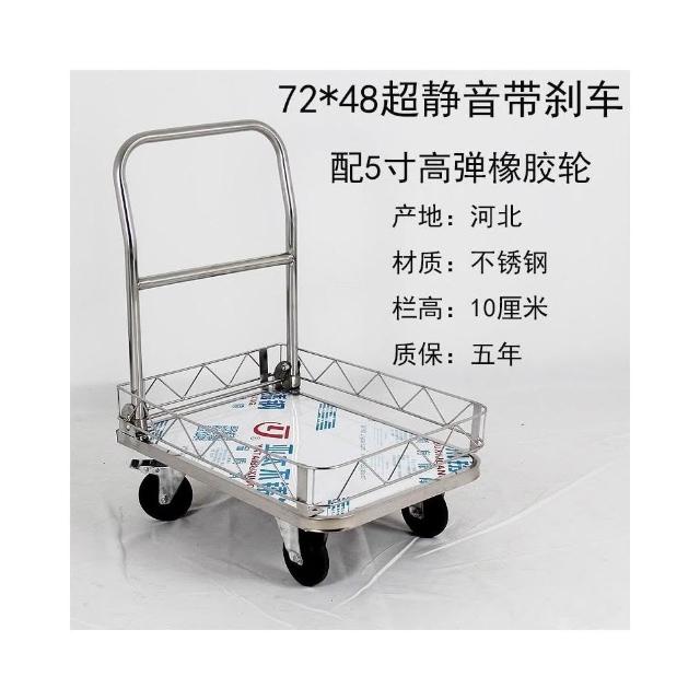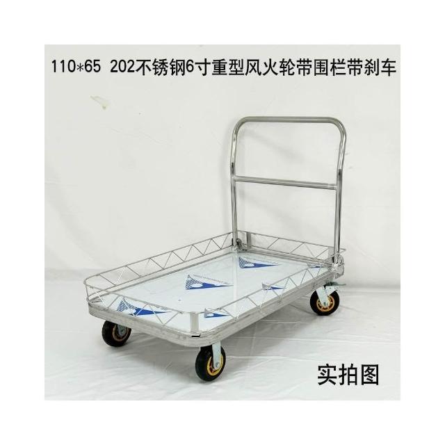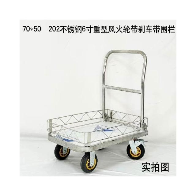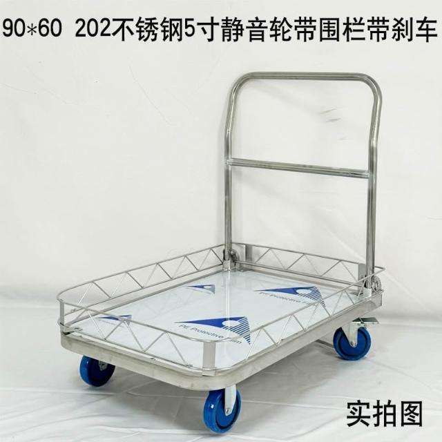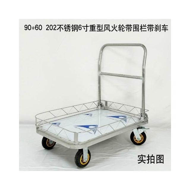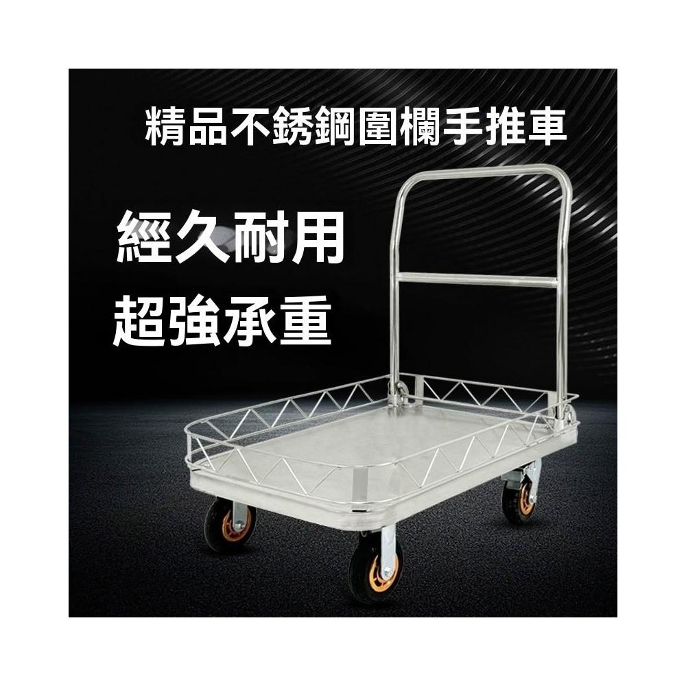 推貨車 不銹鋼圍欄手推車 平板車 折疊小推車 帶護欄手拉車 靜音拉貨車
