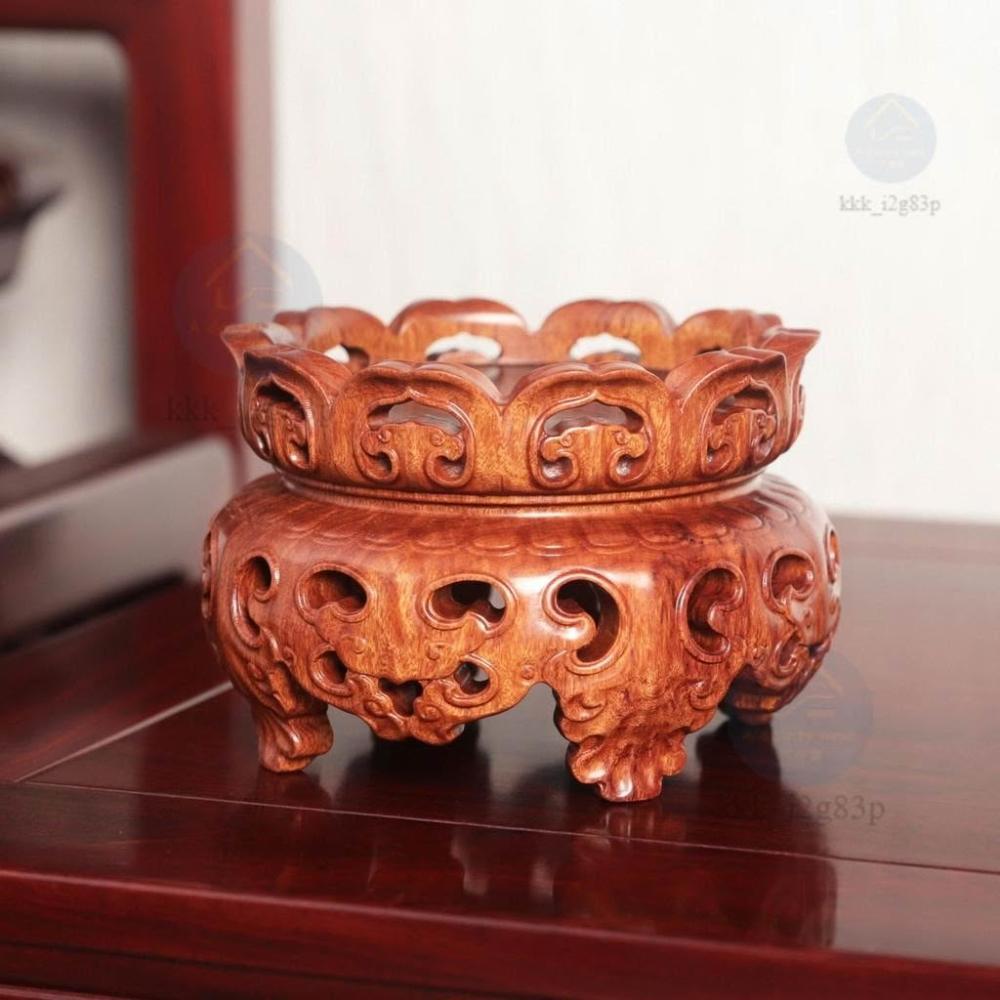圓形雕刻實木擺件底座花瓶茶壺香爐瓷器佛像木托瓷器奇石盆景底托