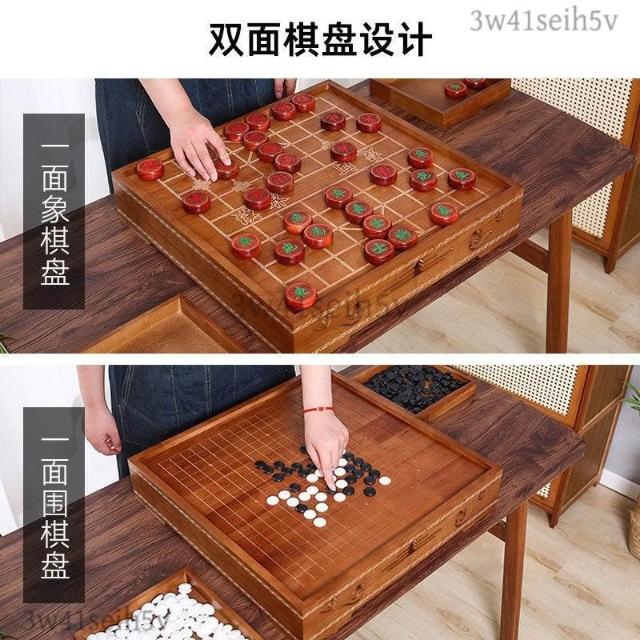 象棋圍棋二合一 雙用棋盤桌 紅木象棋純實木棋桌 兩用棋墩五子棋 兒童成人娛樂棋盤